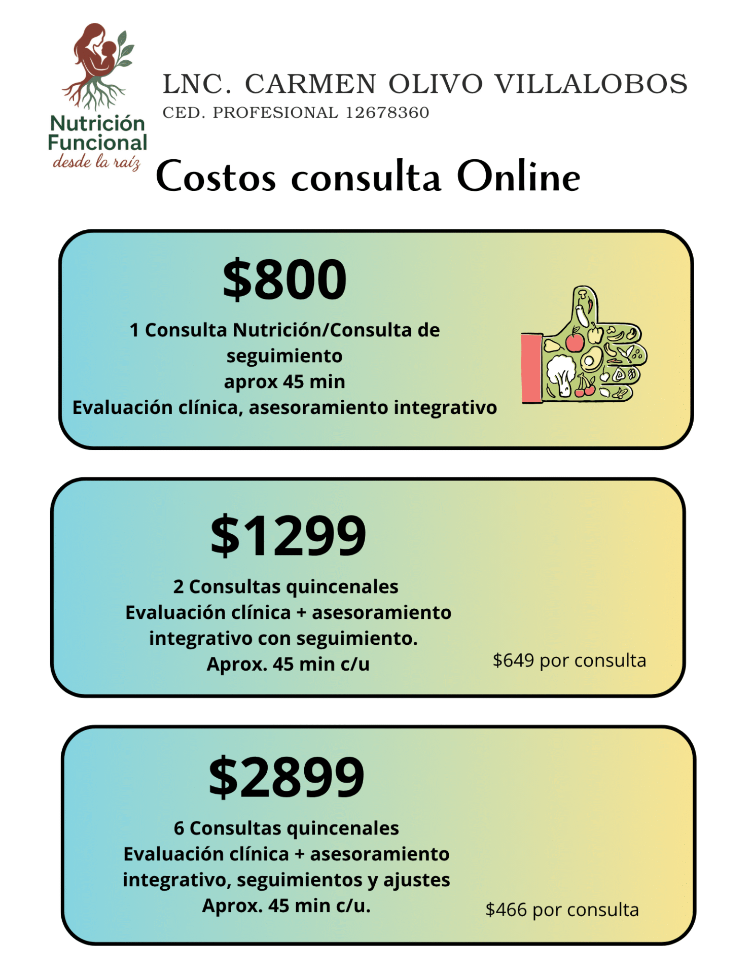 Quiero recomendar a la nutri Carmen ya que mi proceso de cambios alimenticios saludables han sido muy satisfactorios gracias a su acompañamiento. Me siento satisfecha y con más seguridad al hablar de temas de nutrición con mis seres queridos.